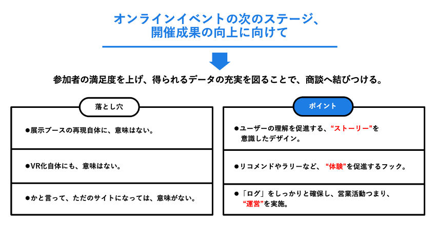 一方、オンラインイベントにおいては、体験価値を向上させ、データを充実させていくのかが重要になっていきます。