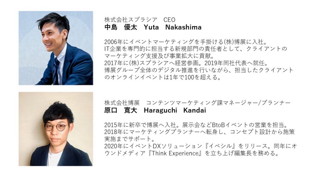 今回は株式会社博展(以下HK)原口氏と博展グループ会社のスプラシア(以下SP)代表中島が、リアル展示会とオンラインセミナーの”トレンド”から”未来”まで徹底解剖!
