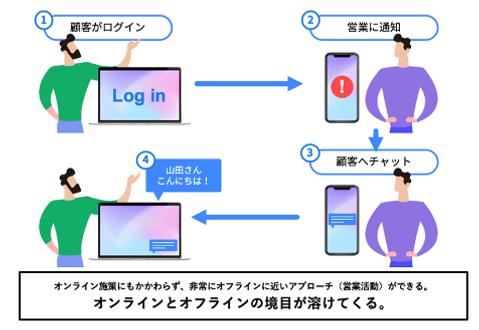 お客さんから連絡が来るのを待つのではなく、営業マンからお客さんに声をかけて運営を行うことを実現し、いよいよオンラインとオフラインの際が解けてきました。