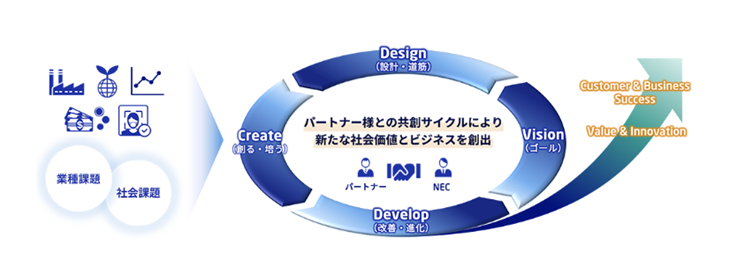 これは製品やサービスの提供によるお客様課題の解決を目的にするのではなく、これまでNECが培ってきた技術、人材、実績や知見、製品・サービスをすべてBluStellarに結集し提供していくことで、お客様のビジネス変革を加速させ、新たな価値創造へ導くことを目的としています。