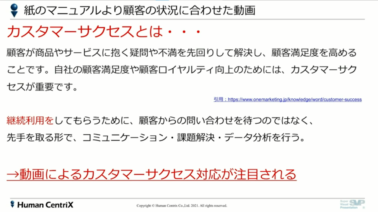 その中で動画の用途として今多いのが、カスタマーサクセスです。お客様に継続利用してもらうためのマニュアルの作成やよくあるお問い合わせの動画化などがすごく増えています。