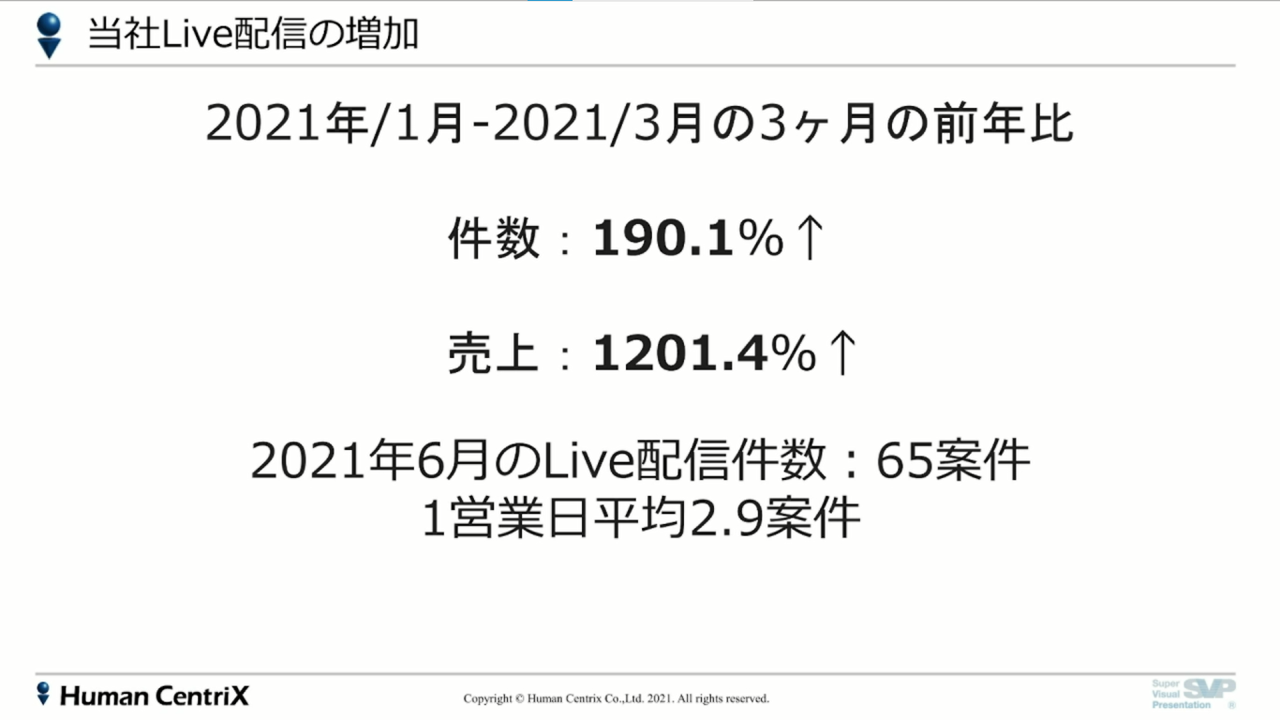 実際の件数で言うと、コロナ前と比べライブだけで190%アップ、売り上げで言うと1200%アップ。オンデマンドは元々やっていたことを踏まえても、件数は400%アップ、売り上げも600%アップしました。