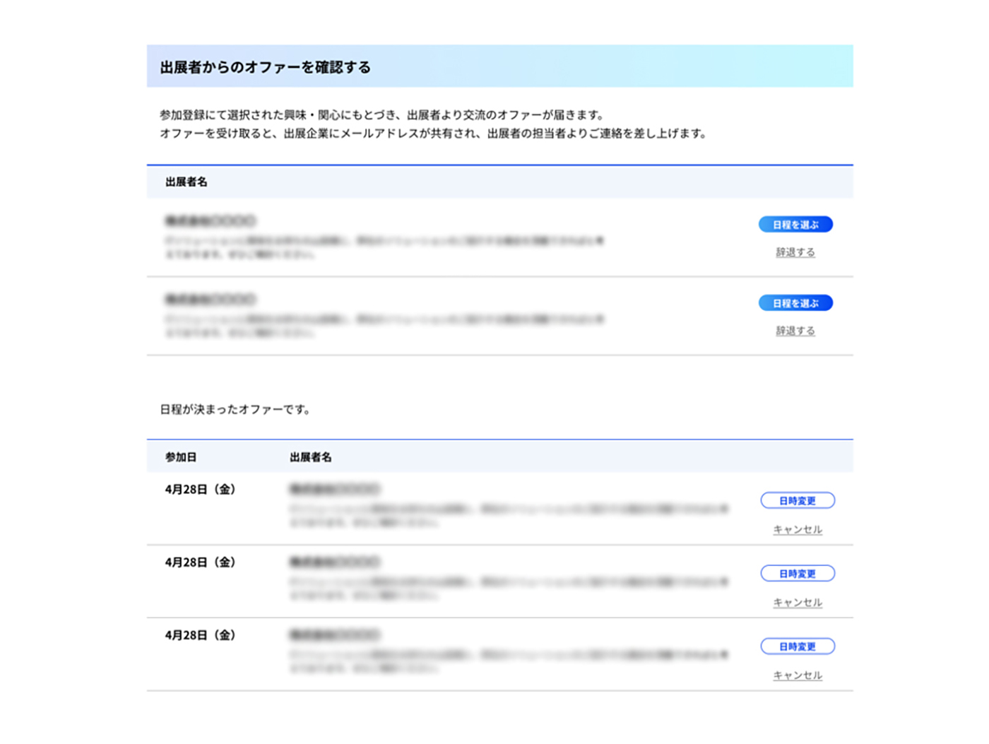 商談機会の創出だけでなく、会期中の有意義な時間の過ごし方にもつながる機能です。