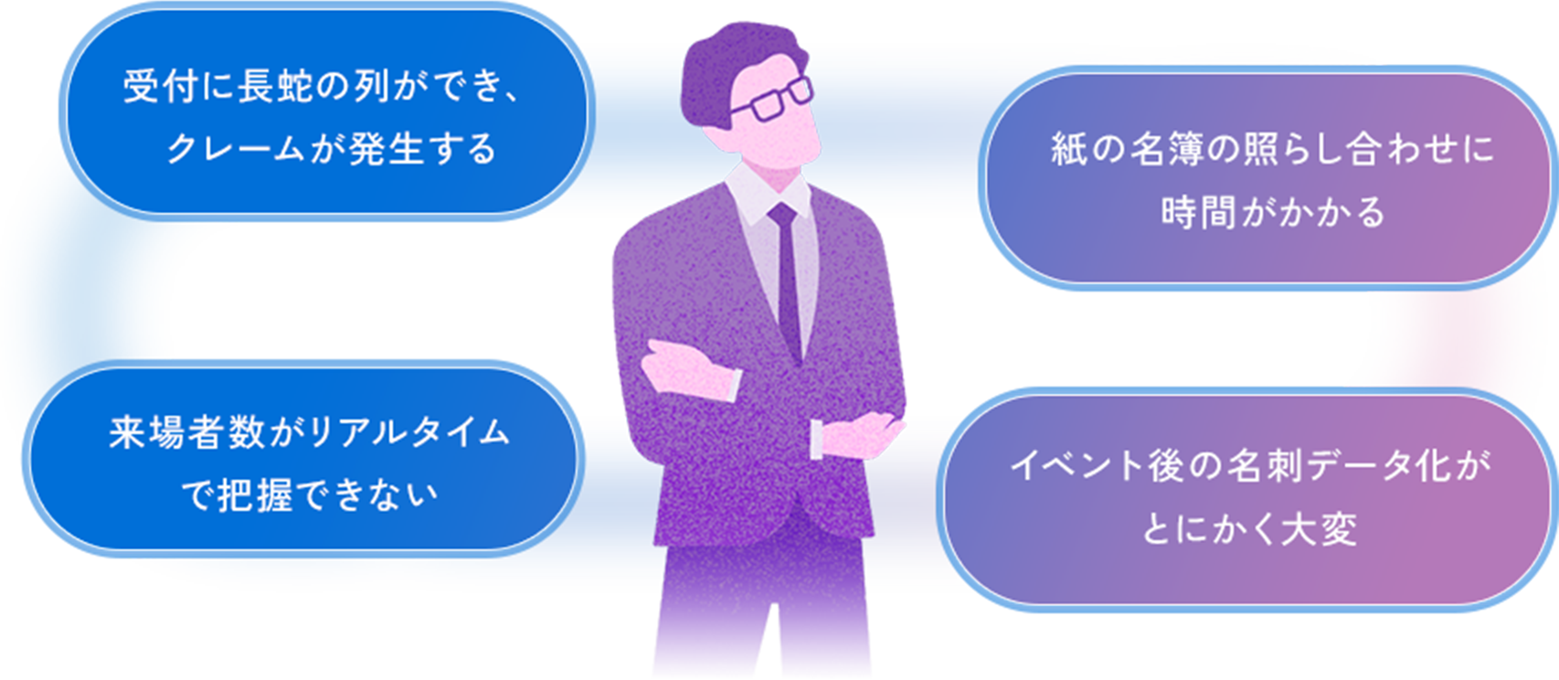 大規模なリアルイベントでは、受付の混雑が顧客満足度の低下や機会損失を招きます。